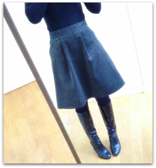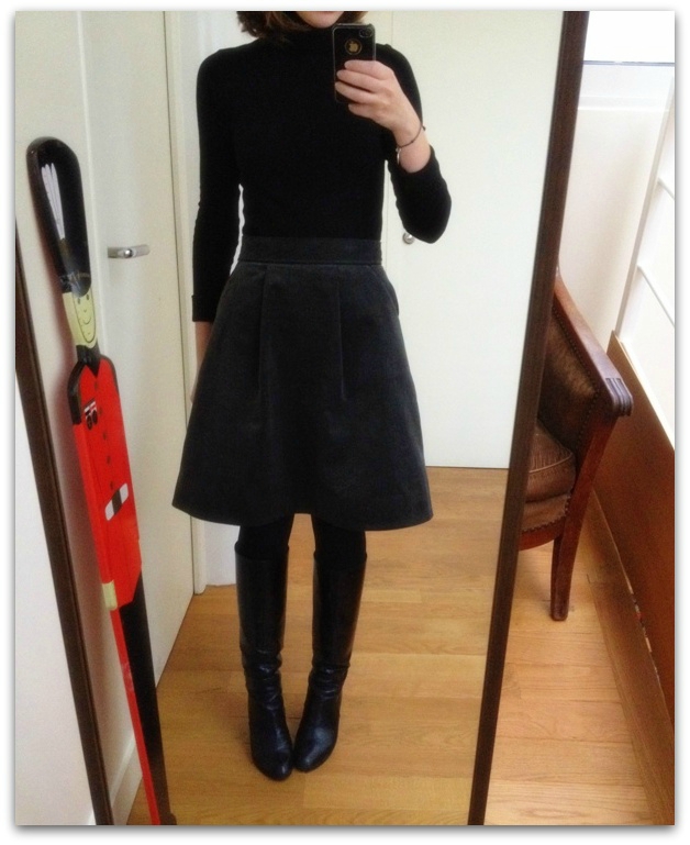 En revanche la jupe m’a tout de suite tapé dans l’œil: montage super simple, taille haute, coupe seyante, velours-compatibilité.